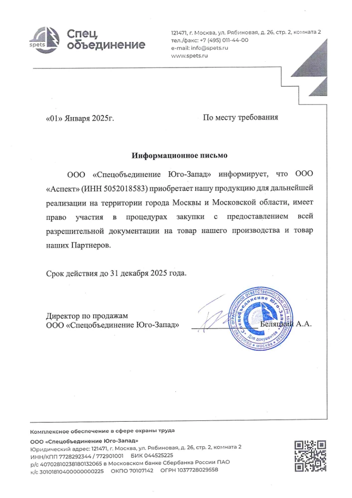 Сообщаем, что наша организация давно сотрудничает с ООО "Аспект". Компания ООО "Аспект" своевременно и в полном объеме исполняет свои обязательства, соблюдает устные и письменные договоренности. ООО "Пк Экостоун" рекомендует ООО "Аспект" в качестве делового партнера и контрагента.