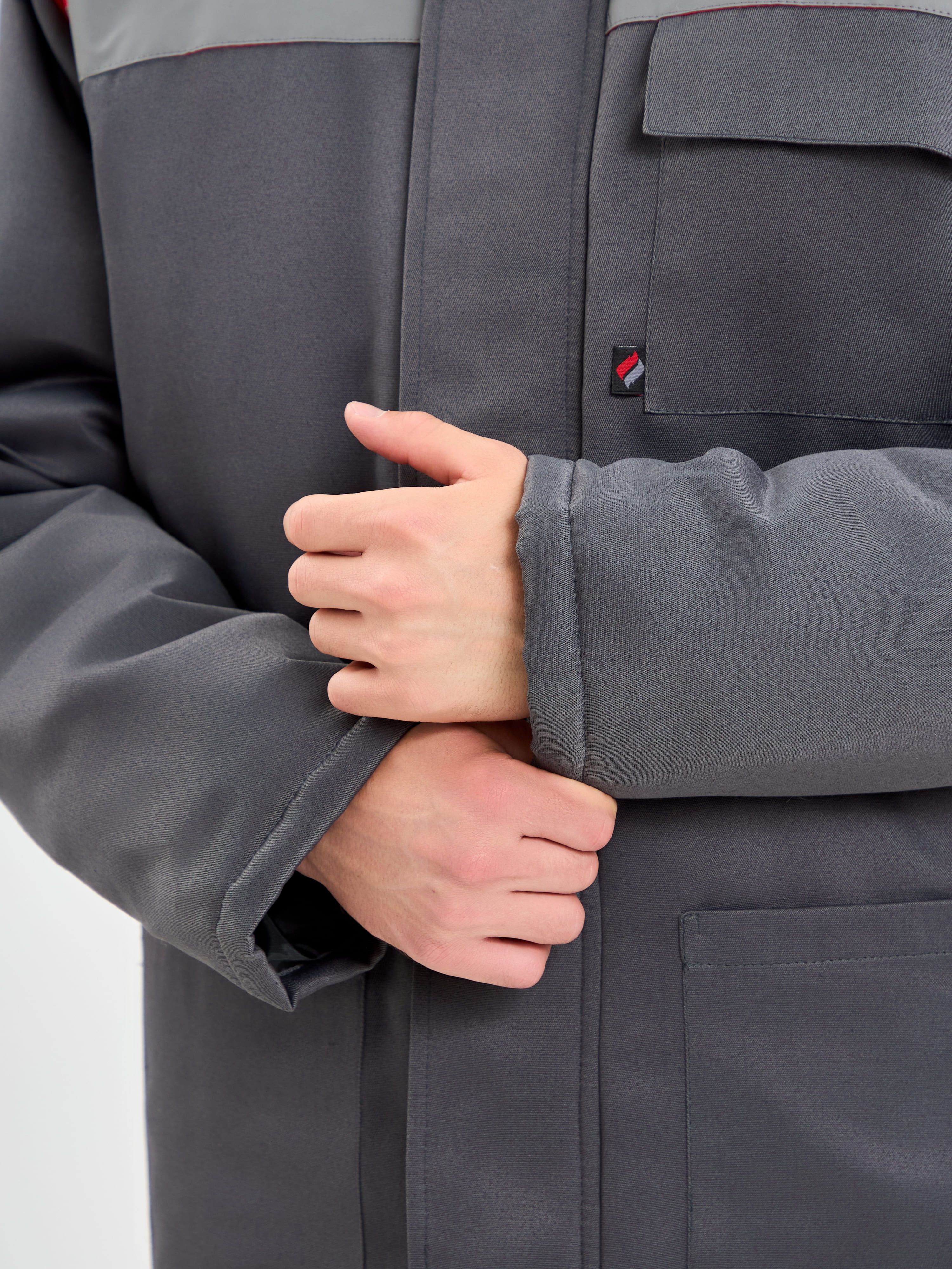 Костюм мужской утепленный "Сибер-NEW СОП" cерый/красный (куртка+п/комб.)